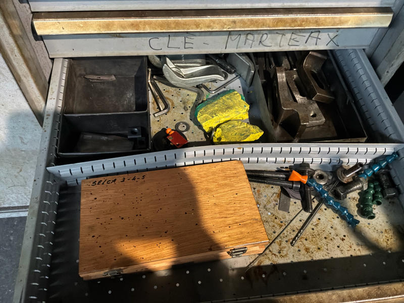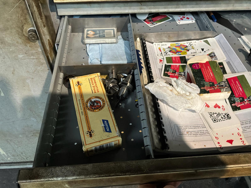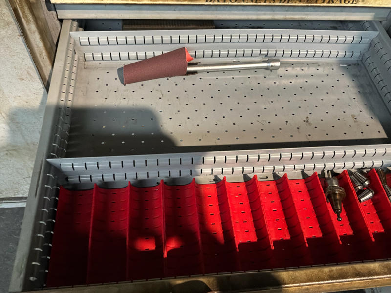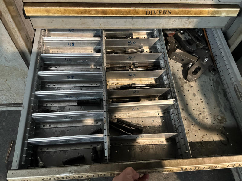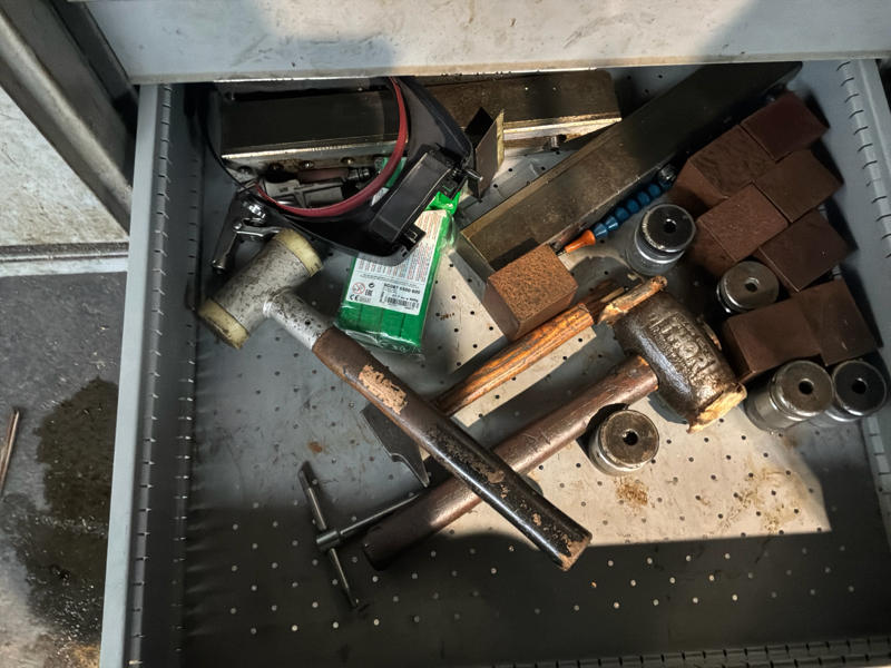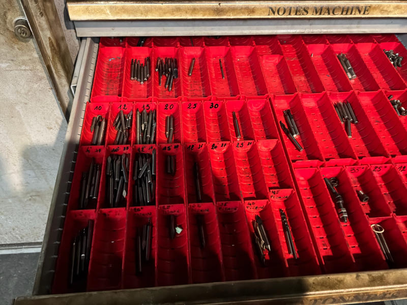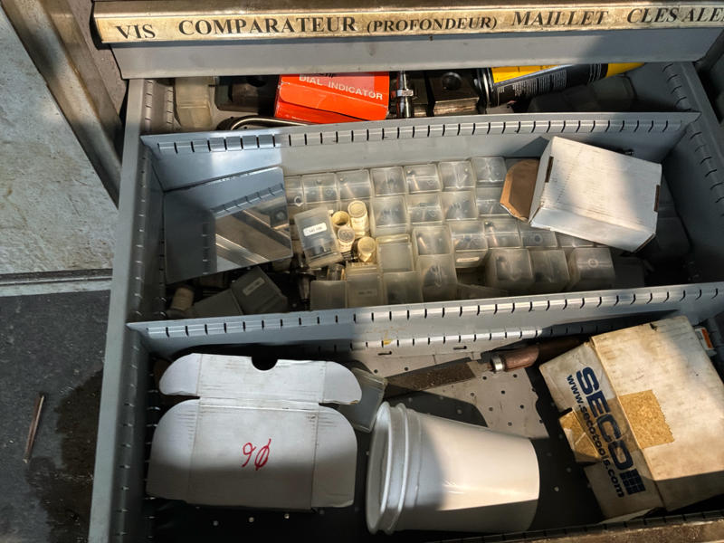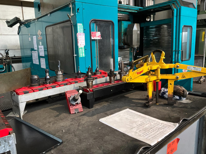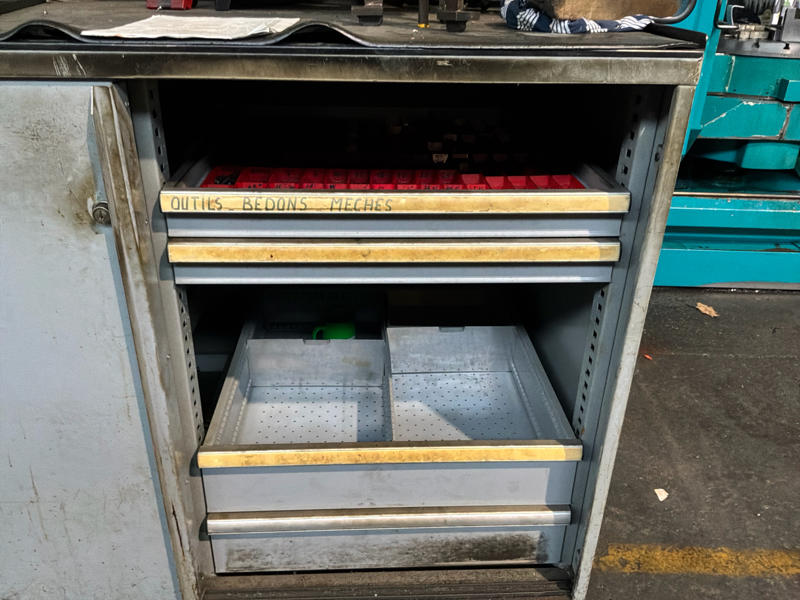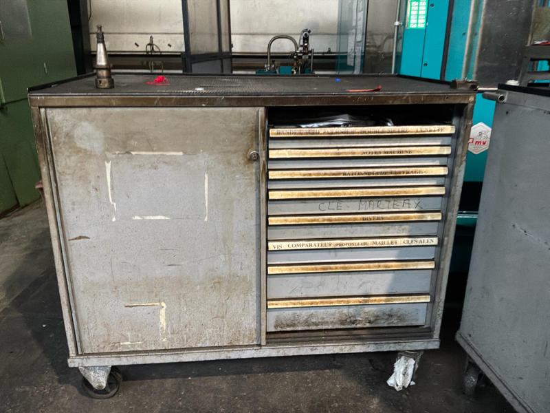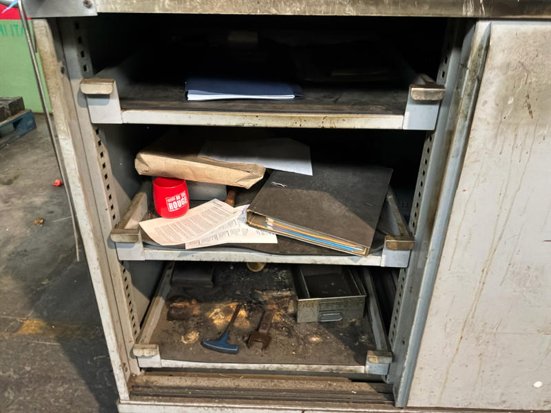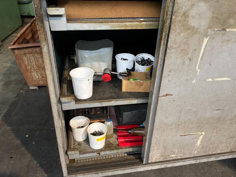 Includes various tools, computer cabinet, 2 x mobile workshop cabinet with contents, mobile work table, spare parts, manuals