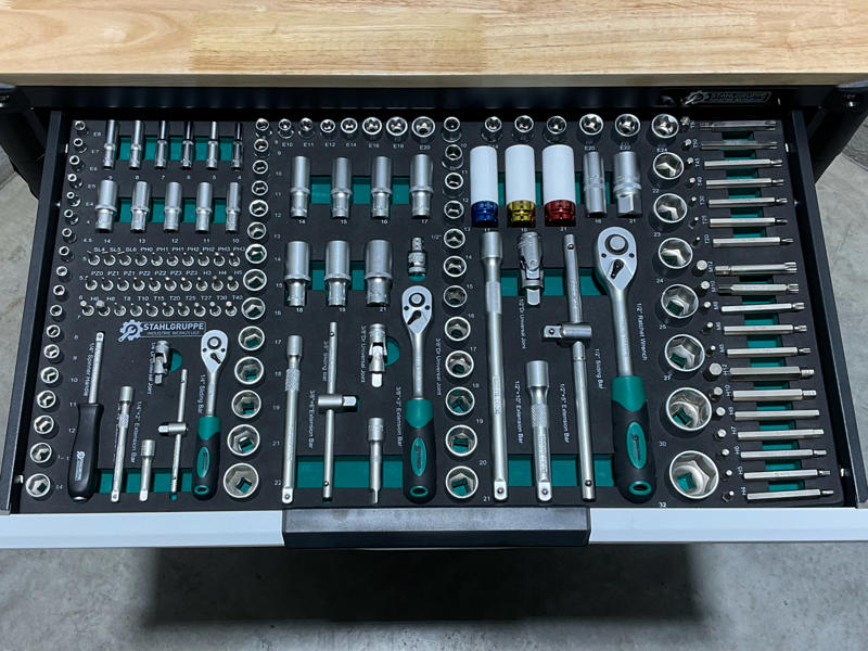 - 3 socket wrench sets (1/2", 3/8" & 1/4")