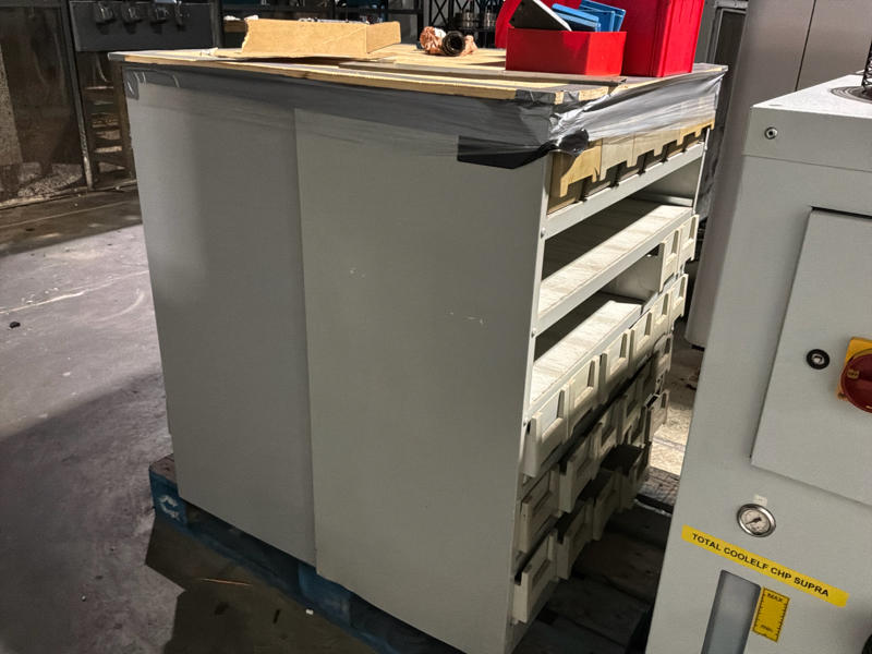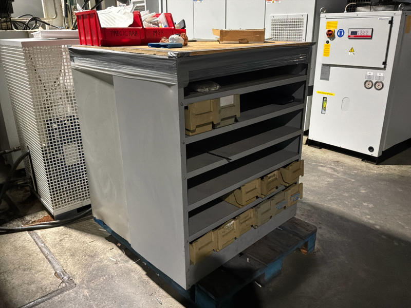 Incluye armario de taller móvil y armario con bandejas de agarre.