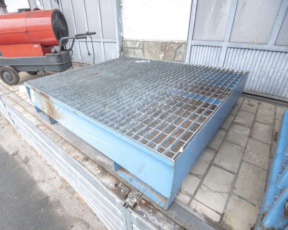 Steel spill containment sump tray with removable grating (bunded pallet)