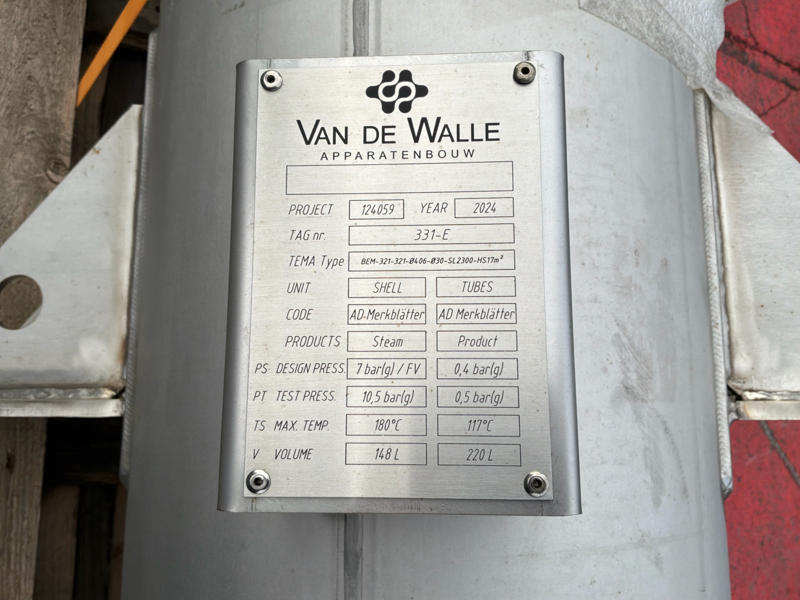 – Shell: 7 barg / full vacuum