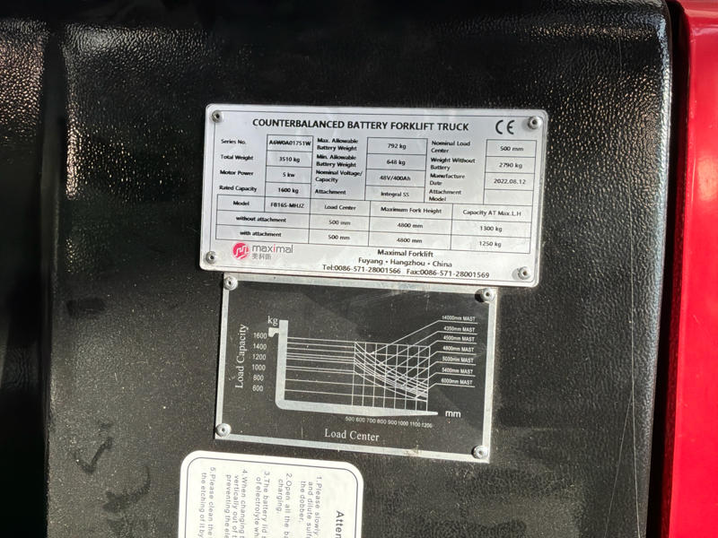 Hauteur de levage maximale : 4800mm