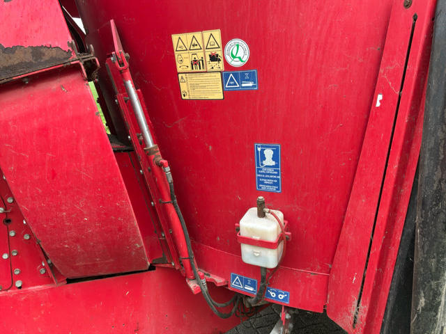 Dotato di: Sistema di pesatura Triotronic 2400V, sterzo, controcoltelli, porte di scarico a destra e a sinistra, soffiatore per paglia