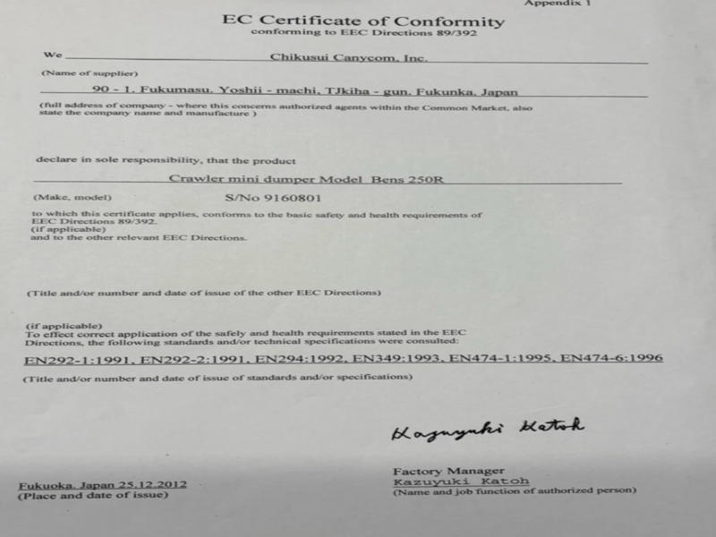 EC certificaat: aanwezig