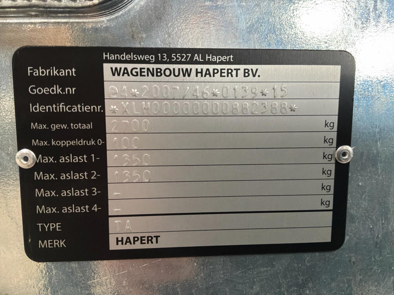 Maximaal laadgewicht: 2700 kg