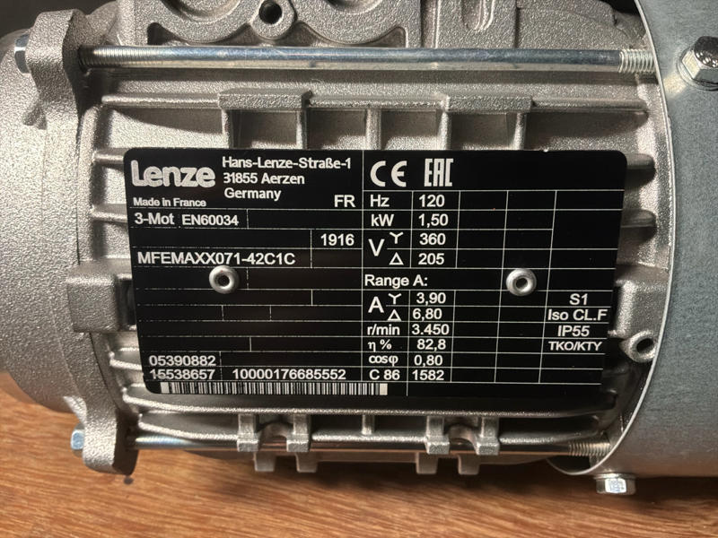 Type: MFEMAJ0071-42C1C driefasige asynchrone motor.